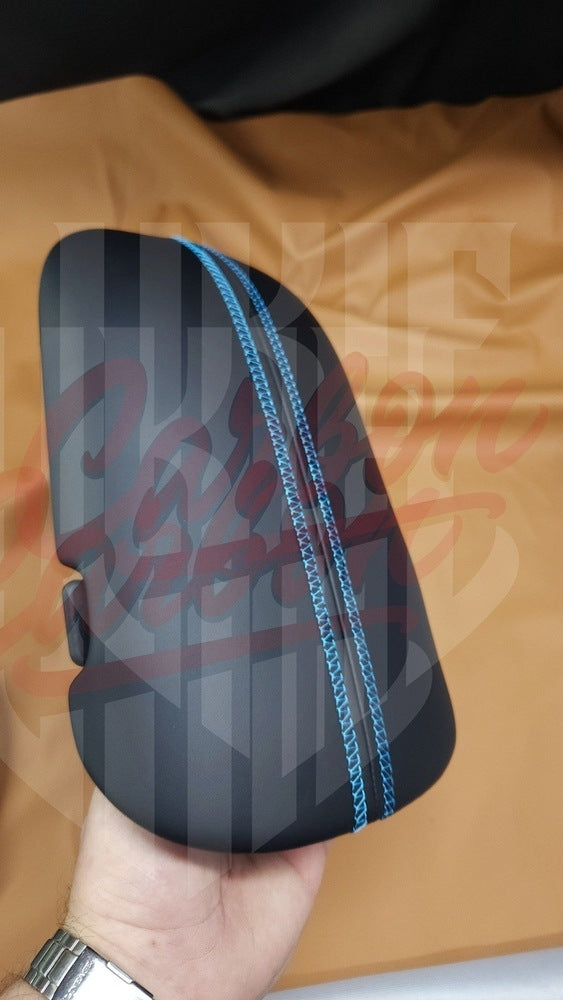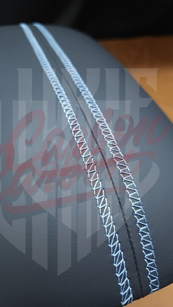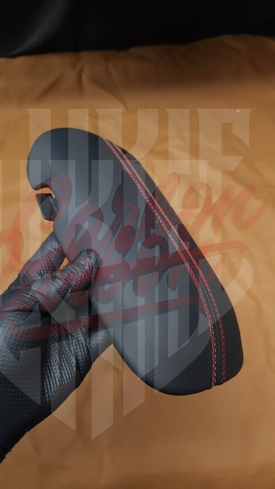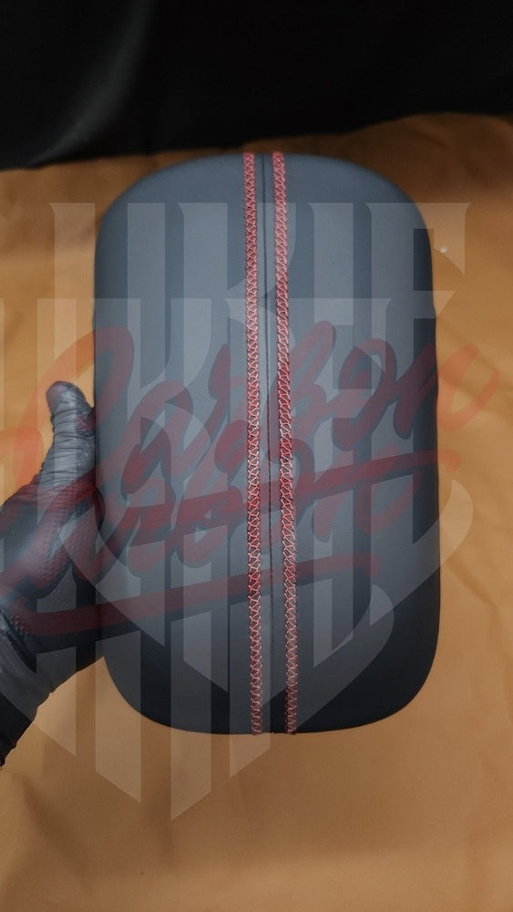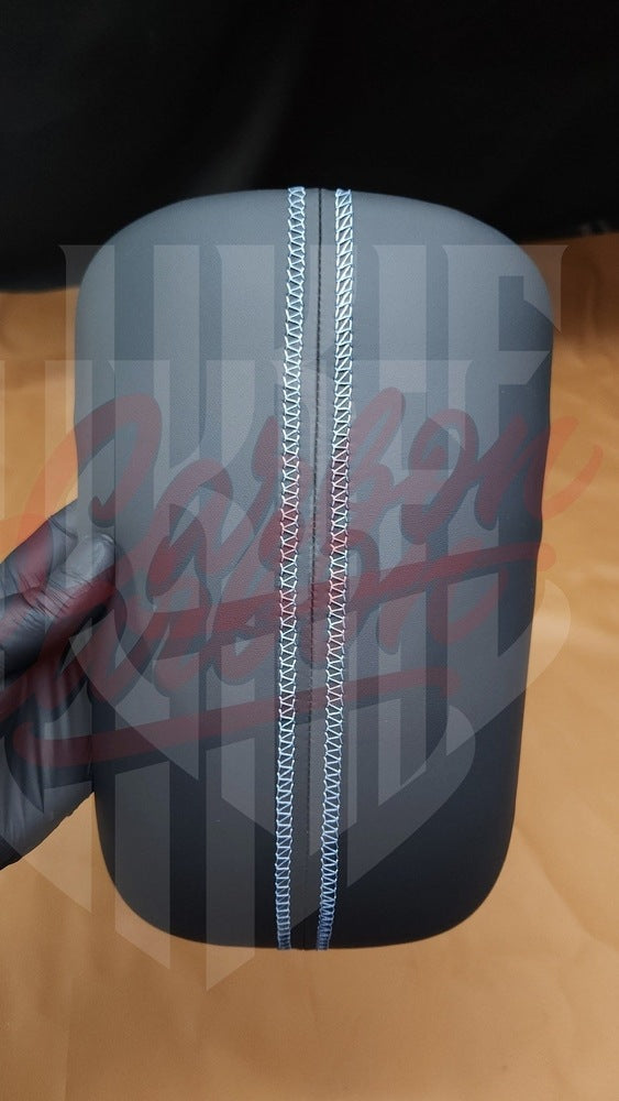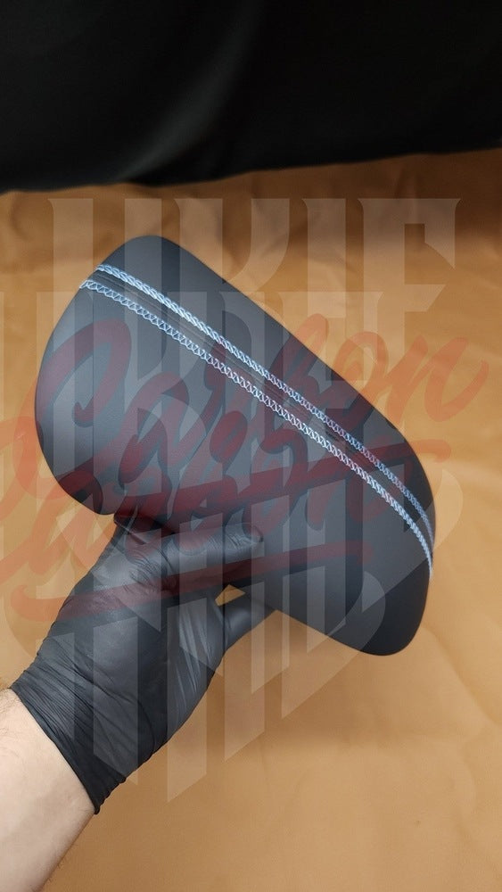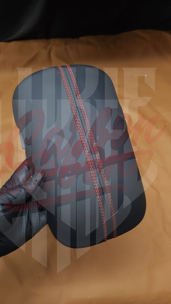 Fits 2015–2023 S550 Mustangs. This leather armrest cover adds a touch of contrast to your interior, blending carbon fiber detailing with automotive leather upholstery for a clean, custom look.